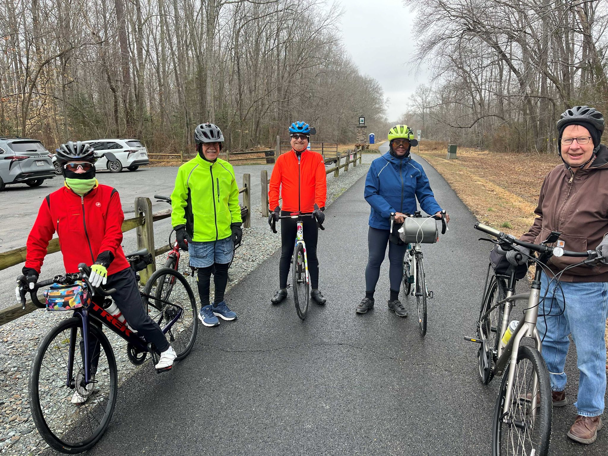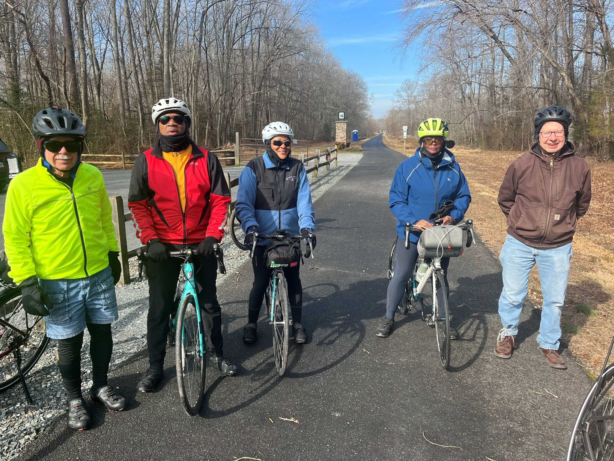Report: We started at the Glenn Dale Community Center in Glenn Dale Md. where there is plenty of parking, bathrooms, water and vending machines (unlike the official trail parking lots). We rode southwest from there on the Washington Baltimore & Annapolis trail to a pond near the southwest start of the trail, then took a half a mile detour on Glenn Dale Rd. to see the ruins of the old Glenn Dale Hospital, formerly a tuberculosis sanatorium closed in 1981 due to asbestos. https://en.wikipedia.org/wiki/Glenn_Dale_Hospital From there we took the WB&A trail northeast toward the other end of the trail in Odenton.