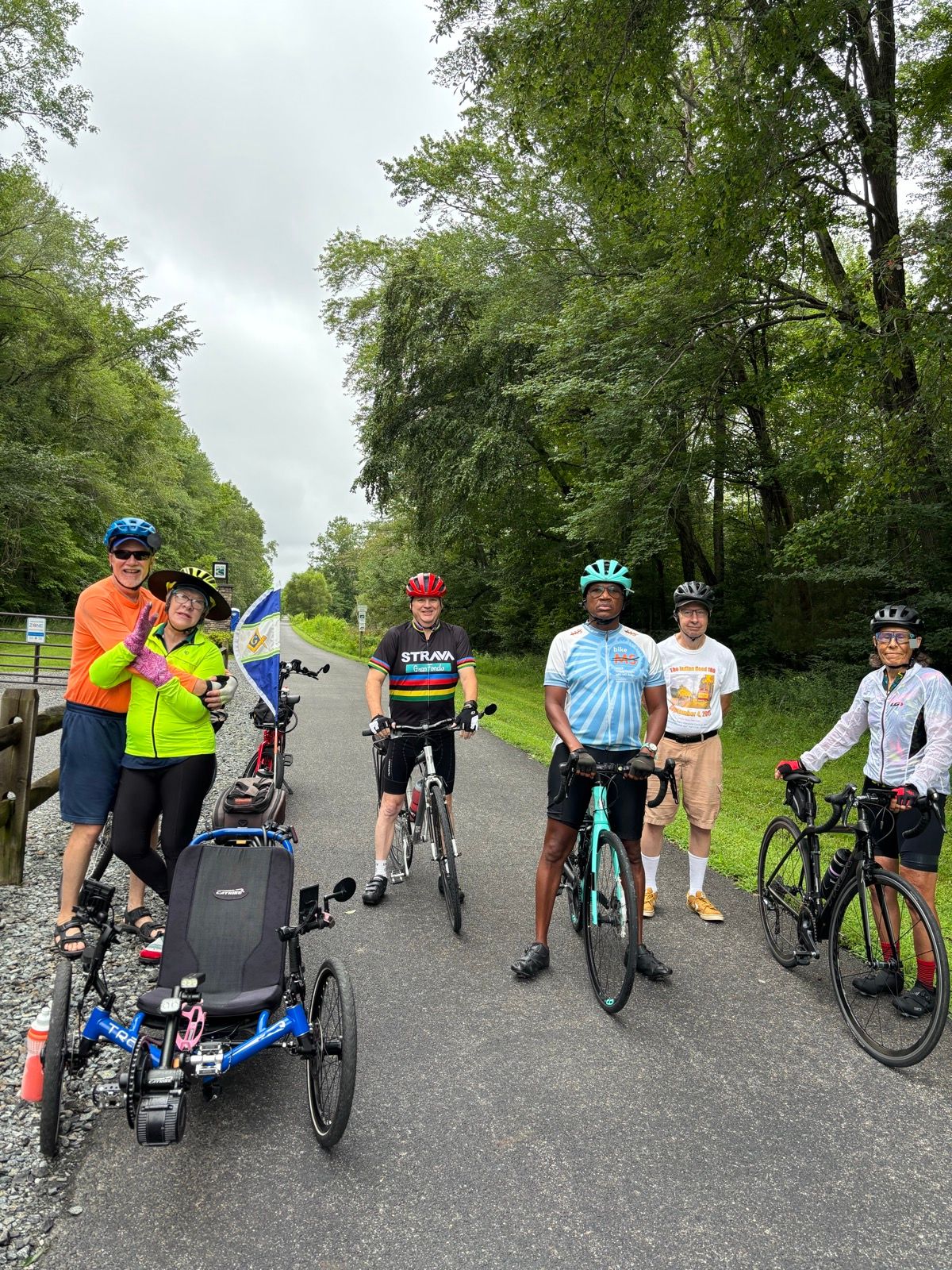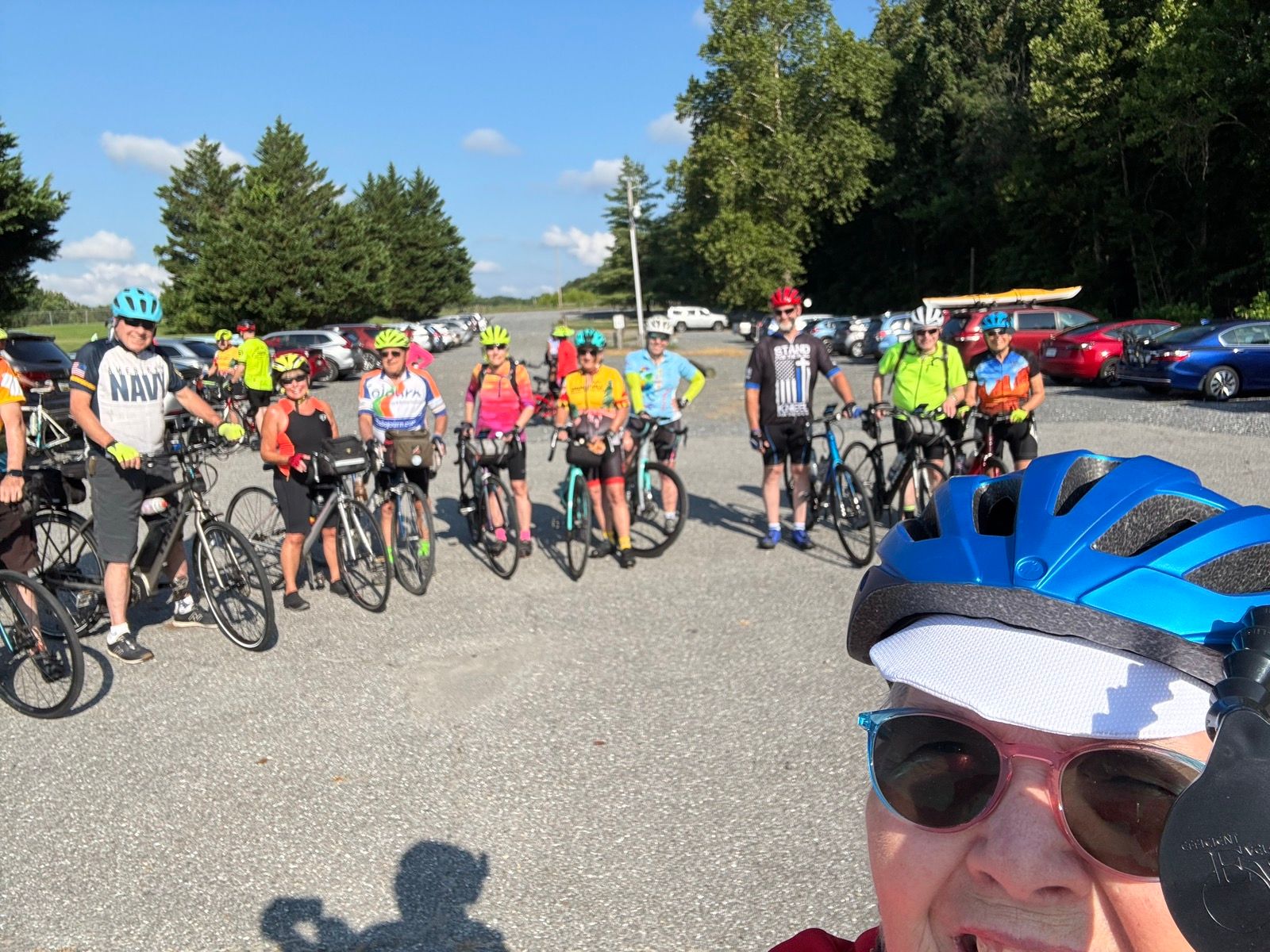 A couple of the riders were new to Wicomico Shores Landing. Getting there on Aviation Yacht Club Rd you go down a long, steep hill by the golf course, and there was some fearful anticipation of the return climb -- quite justified, if indeed you retrace the route, as Pat Walthers and I can attest, having misread the cue sheet once; but fortunately that's not how the route goes: the return passes the turn onto Aviation Yacht Club and takes the easy way up Army Navy Drive, turning onto Aviation Yacht Club only after you've reached the summit.